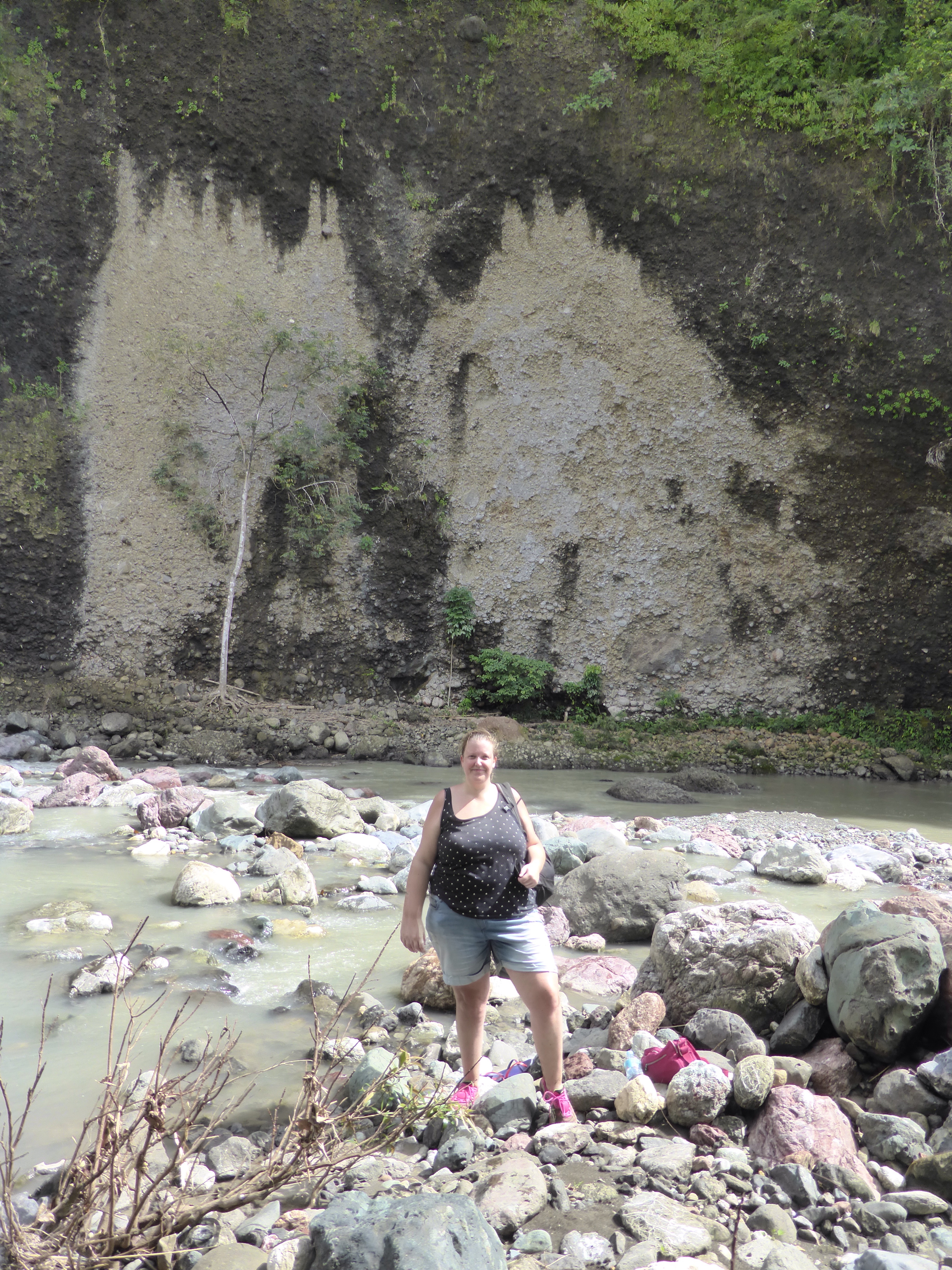 We zijn eerst naar de waterval gelopen, onder leiding van een gids. Naar mijn idee zou het veel makkelijker zijn als ze twee wegwijzers onderweg plaatsen, dan kom je er ook. Maar dan wordt er geen geld meer mee verdient dus dat gaat voorlopig niet gebeuren. Wel lief van de gids dat ze de halve weg mijn schoenen heeft gedragen. Bij de waterval hebben we nog gezwommen, het was voor Filipijnse begrippen erg fris water. Het was gewoon lekker. Als je zo’n rivier in Europa hebt, is ‘ie tegelijk steenkoud en bevries je al als je er één teen insteekt.