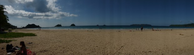 De volgende dag ben ik met een aantal van het hostel, onder andere Angelika en Selina, een Duitse backpacker, naar Las Cabanãs beach geweest. Met z’n vieren in de tricycle. Nu hebben de tricycles op Palawan weer een ander model, een stuk onhandiger. Maar het paste. Het kostte de motor veel moeite om de heuvels op en af te gaan. Gezwommen, gelegen op het strand en nog even rond gelopen. Mooi en gezellig!