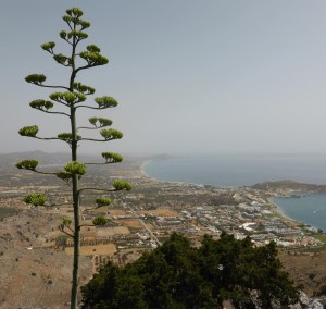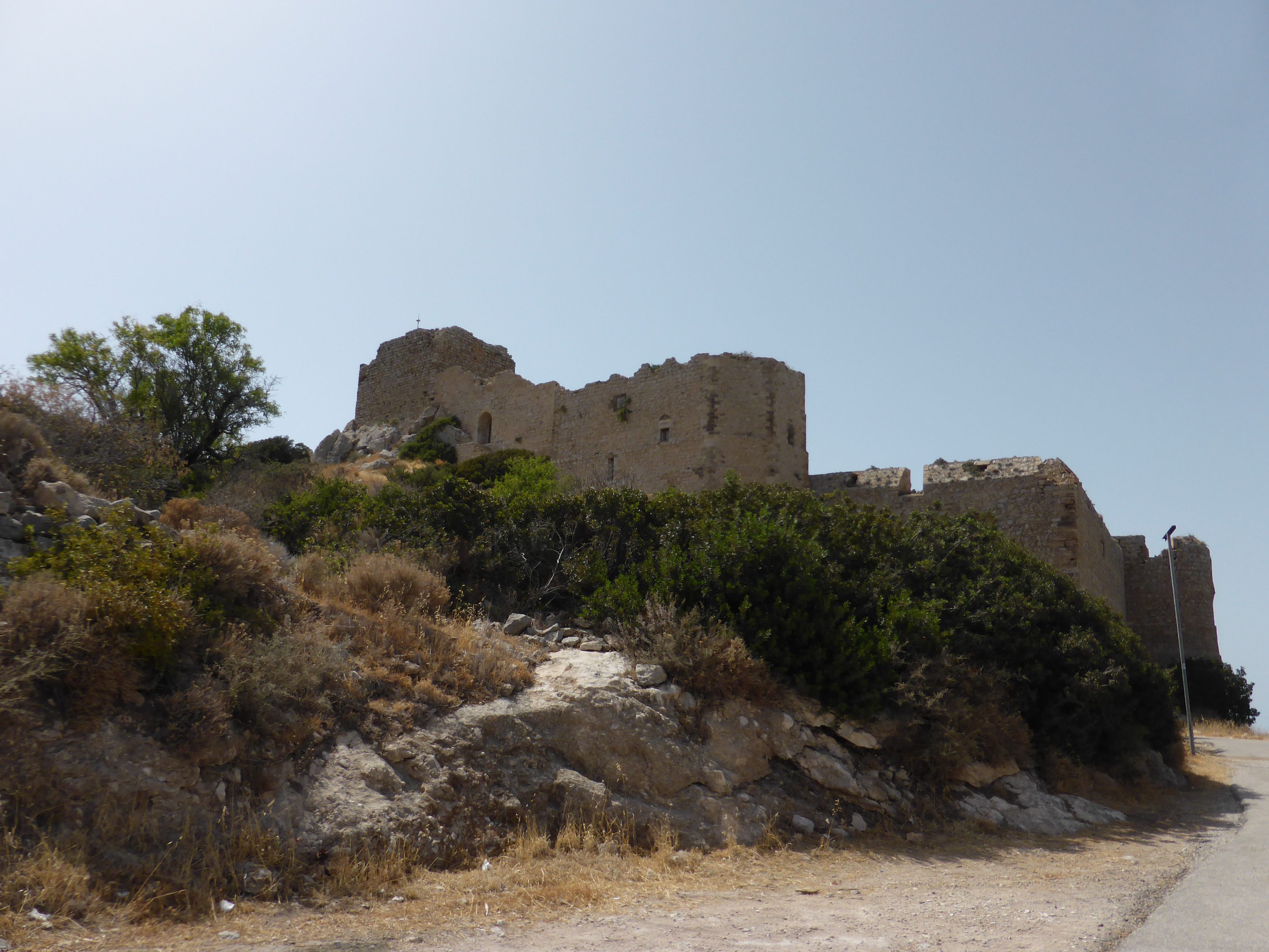 Nadat we in de haven van Kamiros een goede Griekse salade hebben gegeten, zijn we naar de kasteelruïne van Kritinia geweest. Het ligt mooi bovenop een heuvel langs de kust. Het is een kasteel gebouwd door de ridders van de orde van de Johannieters. Die hebben in de middeleeuwen nog heel wat op Rhodos rondgelopen. Ook de oude stad van Rhodos is voornamelijk door deze ridders verbouwd. Vooral de ligging is mooi. Bij oude opgravingen en ruïnes op Rhodos hoef je weinig informatie te verwachten. Wel zijn ze leuk gelegen en zijn ze vaak gratis te bezoeken.